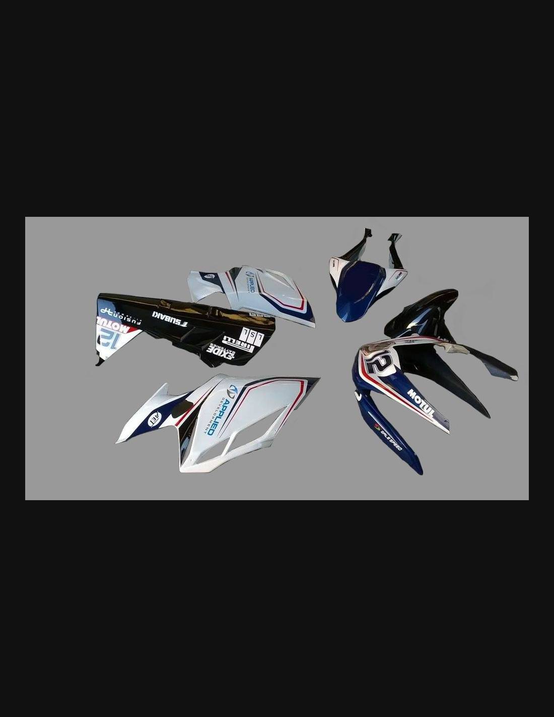 Il kit di carene comprende: cupolino, fianchi destro e sinistro, puntale a vasca, codone e parafango anteriore (il copriserbatoio non è incluso nel prezzo).