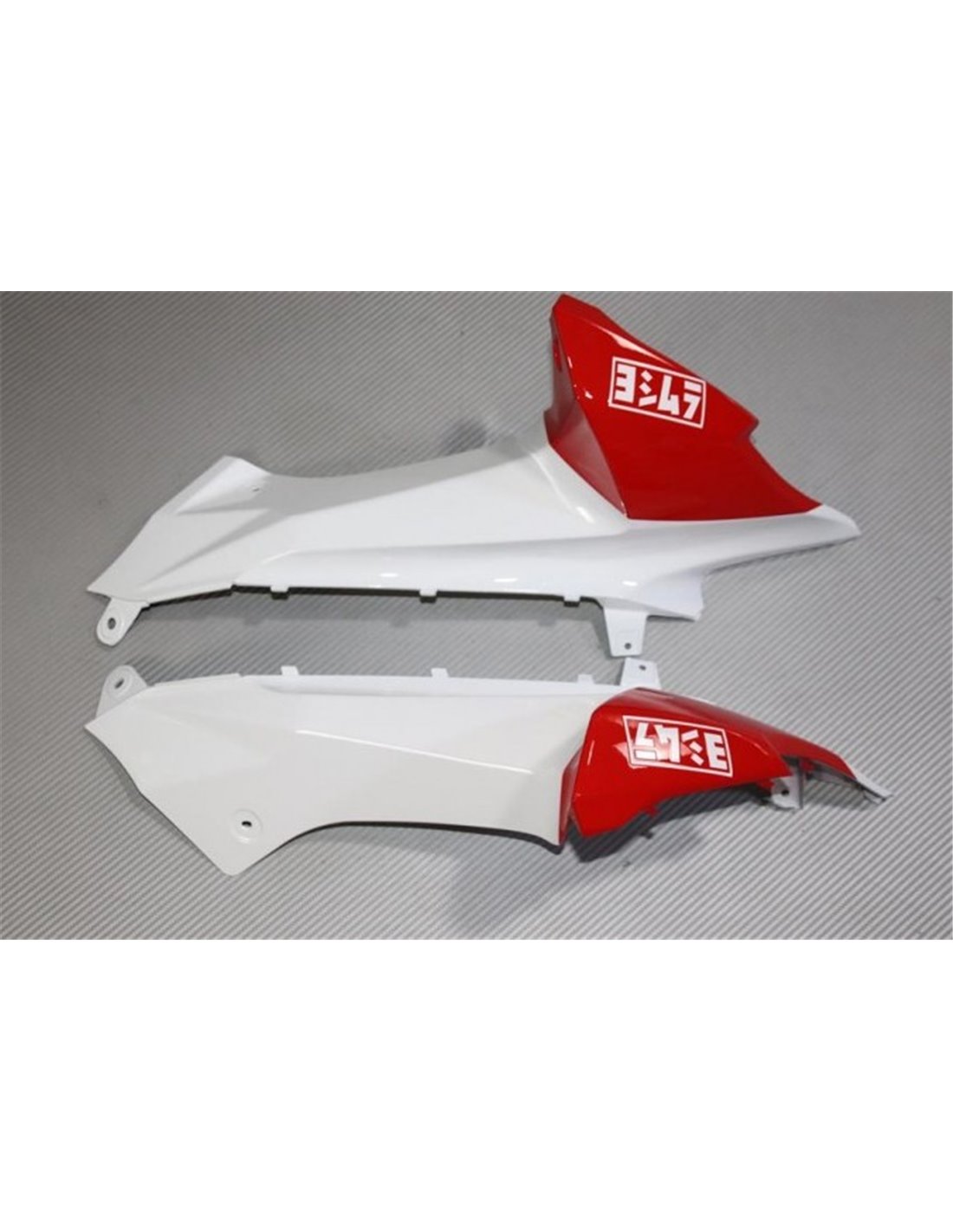 Our street fairings are made of ABS (plastic) and they are compatible with the stock fairings. We supply them already pre-drilled and there are all internal mounting points, so we can guarantee an easy installation and without modifications on the motorcycle of the customer. Also, they are compatible with the screws and other OEM accessories of the motorbike. Price includes the heat shield protection to stick on the lower fairings too.
