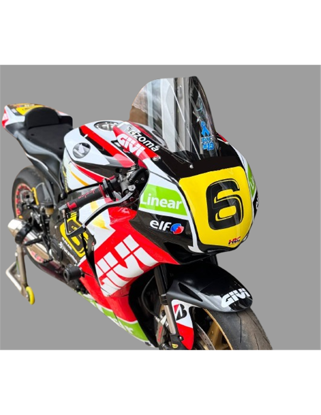 Our race fairings are made of fiberglass, they are reinforced in carbon and Kevlar in the stress areas. We include a closed lower fairing that allows to catch the liquids, so our fairings are approved for the various championships and for the amateur usage on the tracks. We mark where you should drill the holes, so you can make the hole according to the dimension of the screw you are going to use.