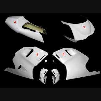 Our race fairings are made of fiberglass, they are reinforced in carbon and Kevlar in the stress areas. We include a closed lower fairing that allows to catch the liquids, so our fairings are approved for the various championships and for the amateur usage on the tracks. We mark where you should drill the holes, so you can make the hole according to the dimension of the screw you are going to use.