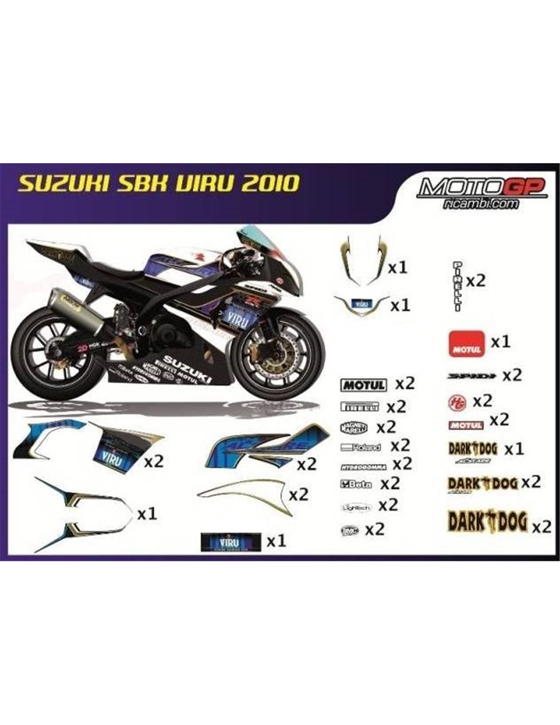Stickers are produced with high quality materials and are adapted on the dimensions of the bike that the customer indicates during the purchase. The kit includes all non-original stickers, in order to complete the desired design: for front upper part, right and left side fairing, belly pan, back seat, swingarm and front fender. It’s possible to customize stickers too (colours, numbers, names, etc). It’s important to write changes in the field “more information”. The price of the sticker kit doesn’t change, unless substantial modifications (e.g. fluorescent colours). Through the purchase, you accept the sales conditions. You can stick them under the clear coat or after it. Unless a different request of the customer, we will supply the sticker kit with the protection.