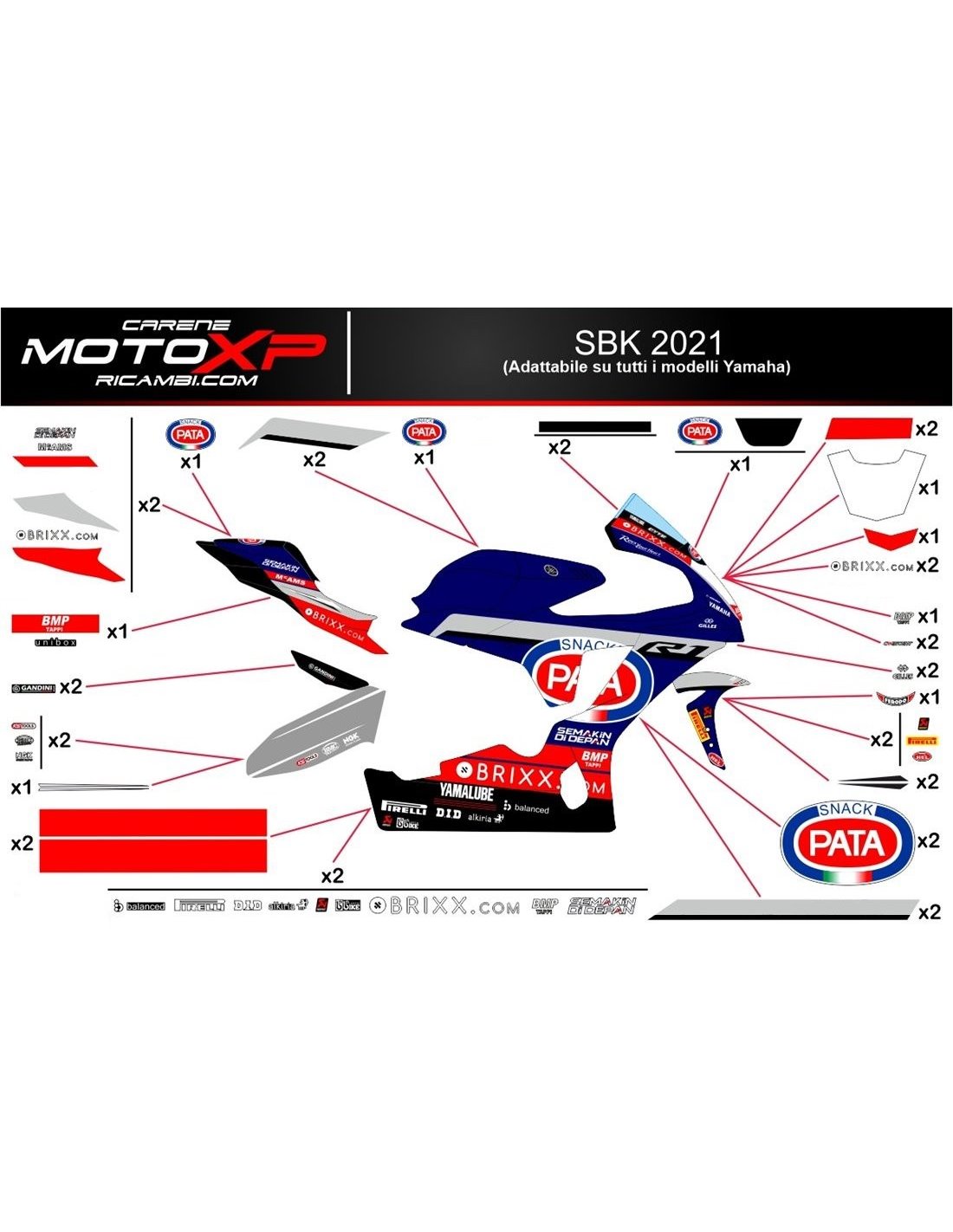 Stickers are produced with high quality materials and are adapted on the dimensions of the bike that the customer indicates during the purchase. The kit includes all non-original stickers, in order to complete the desired design: for front upper part, right and left side fairing, belly pan, back seat, swingarm and front fender. It’s possible to customize stickers too (colours, numbers, names, etc). It’s important to write changes in the field “more information”. The price of the sticker kit doesn’t change, unless substantial modifications (e.g. fluorescent colours). Through the purchase, you accept the sales conditions. You can stick them under the clear coat or after it. Unless a different request of the customer, we will supply the sticker kit with the protection.