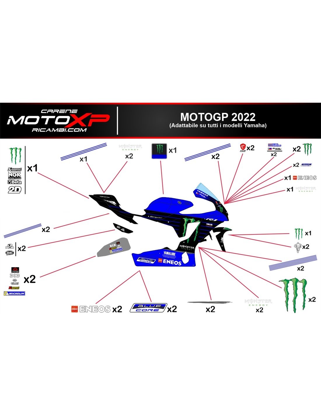 Sticker set compatible with Yamaha R1 2007 - 2008 - MXPKAD11858