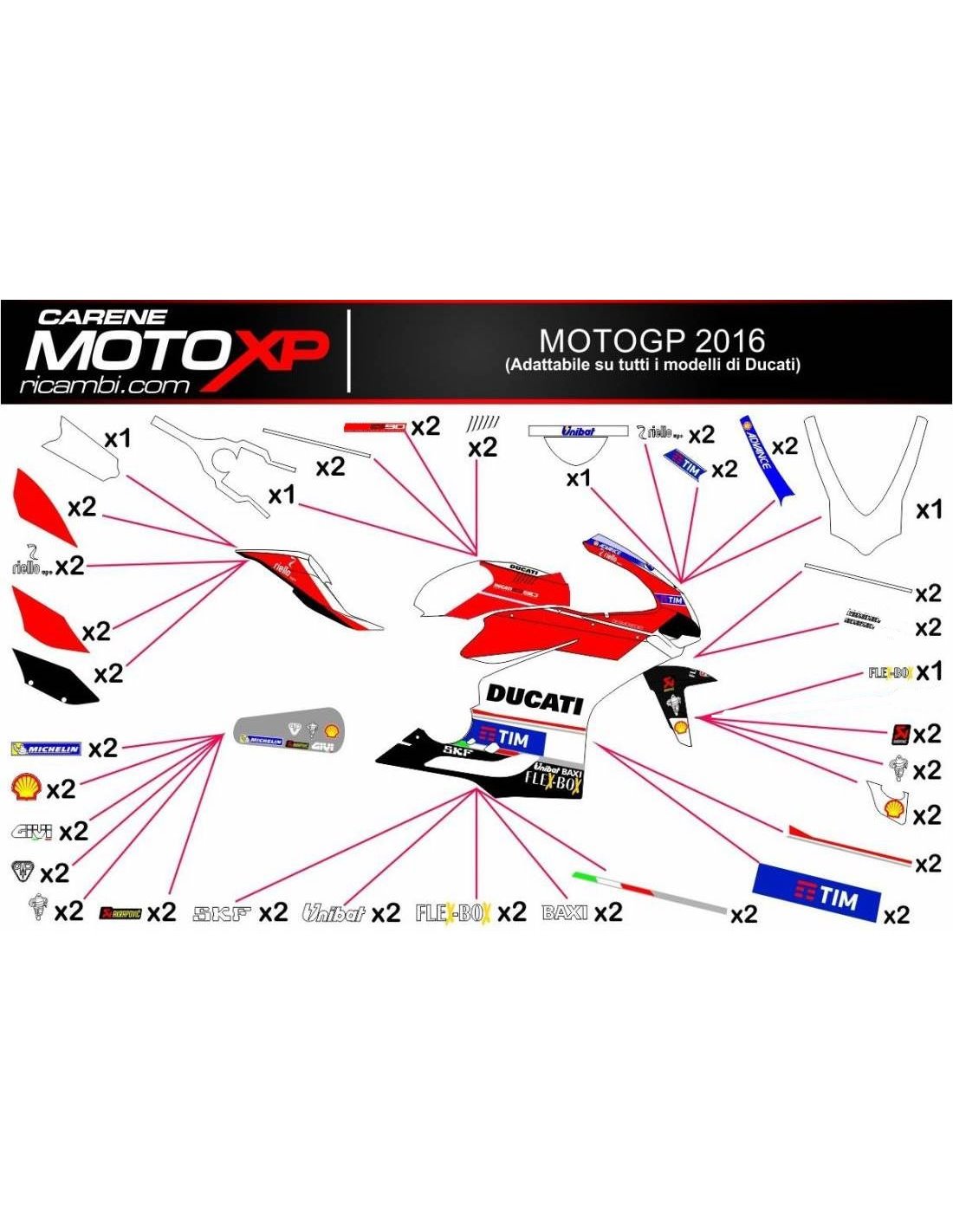Stickers are produced with high quality materials and are adapted on the dimensions of the bike that the customer indicates during the purchase. The kit includes all non-original stickers, in order to complete the desired design: for front upper part, right and left side fairing, belly pan, back seat, swingarm and front fender. It’s possible to customize stickers too (colours, numbers, names, etc). It’s important to write changes in the field “more information”. The price of the sticker kit doesn’t change, unless substantial modifications (e.g. fluorescent colours). Through the purchase, you accept the sales conditions. You can stick them under the clear coat or after it. Unless a different request of the customer, we will supply the sticker kit with the protection.