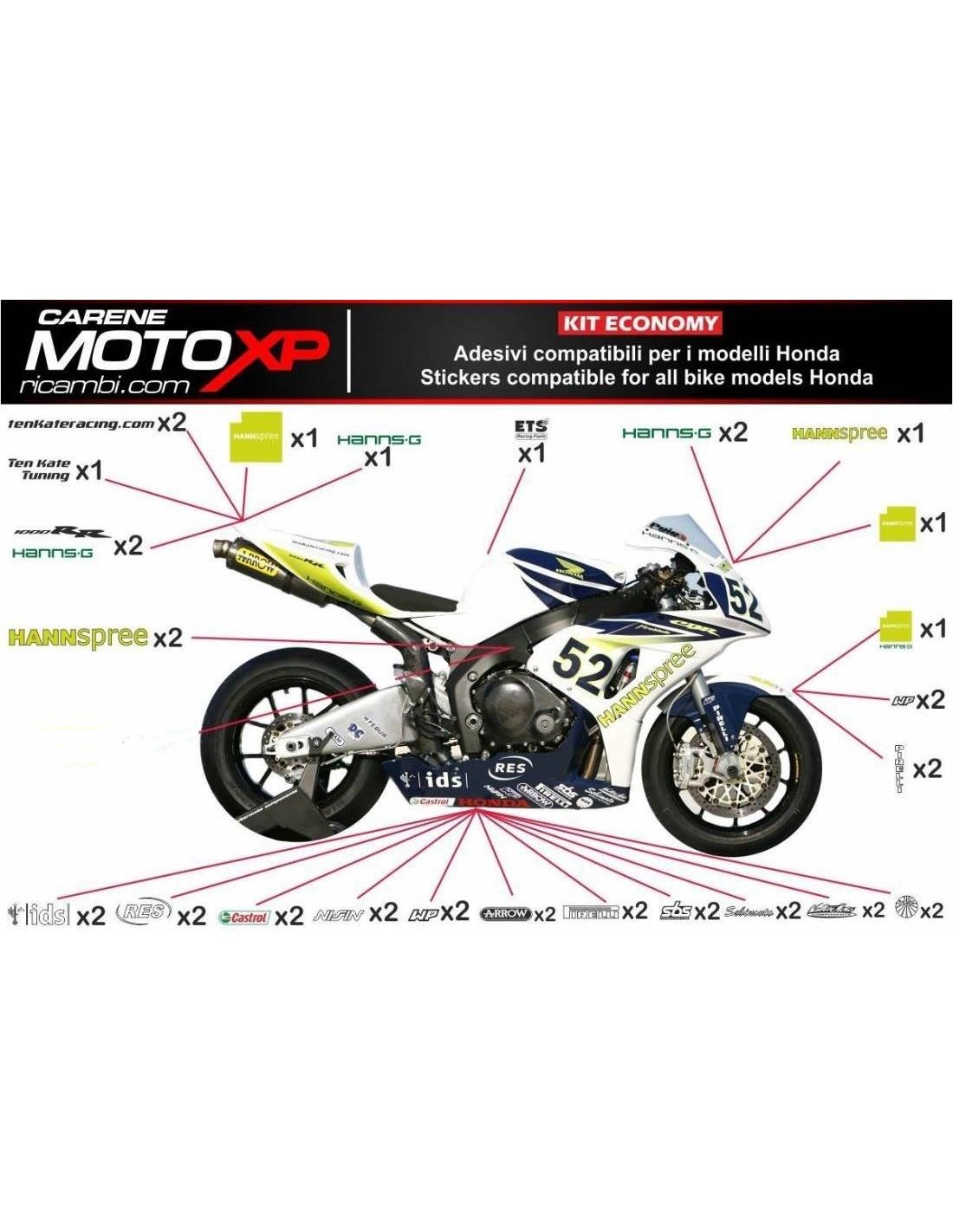 Sticker set compatible with Honda Cbr 1000 RR 2008 - 2011 - MXPKAD9354