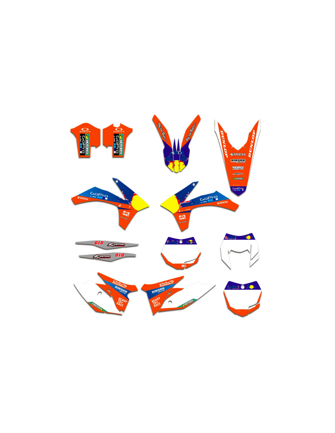 The stickers we produce are made of first quality crystal materials that will be adapted easily and perfectly on the plastics of the motorcycle of the customer. The resistance of the material allows our graphic to stay perfectly sticked also during the most difficult usage conditions of the motorcycle. The installation, thanks to the channels for air discharge lets you install the stickers smoothly and without bubbles. We use last generation machineries for the printing, so we can print bright colors and high qualities shades. We include a protective layer on the stickers, so they will be always bright during the years and are protected against water and dirt. It is possible to customize the stickers as you prefer. You can add, remove or change technician sponsors, add a custom race number or your own name. You can indicate all changes in the field “Product customization” on the website during the purchase. We are not limited only to the graphics on our website, you can send us by email or WhatsApp a picture of a design we don’t have, so we can make you a quotation and then make it. Through the purchase, you accept the sales conditions.