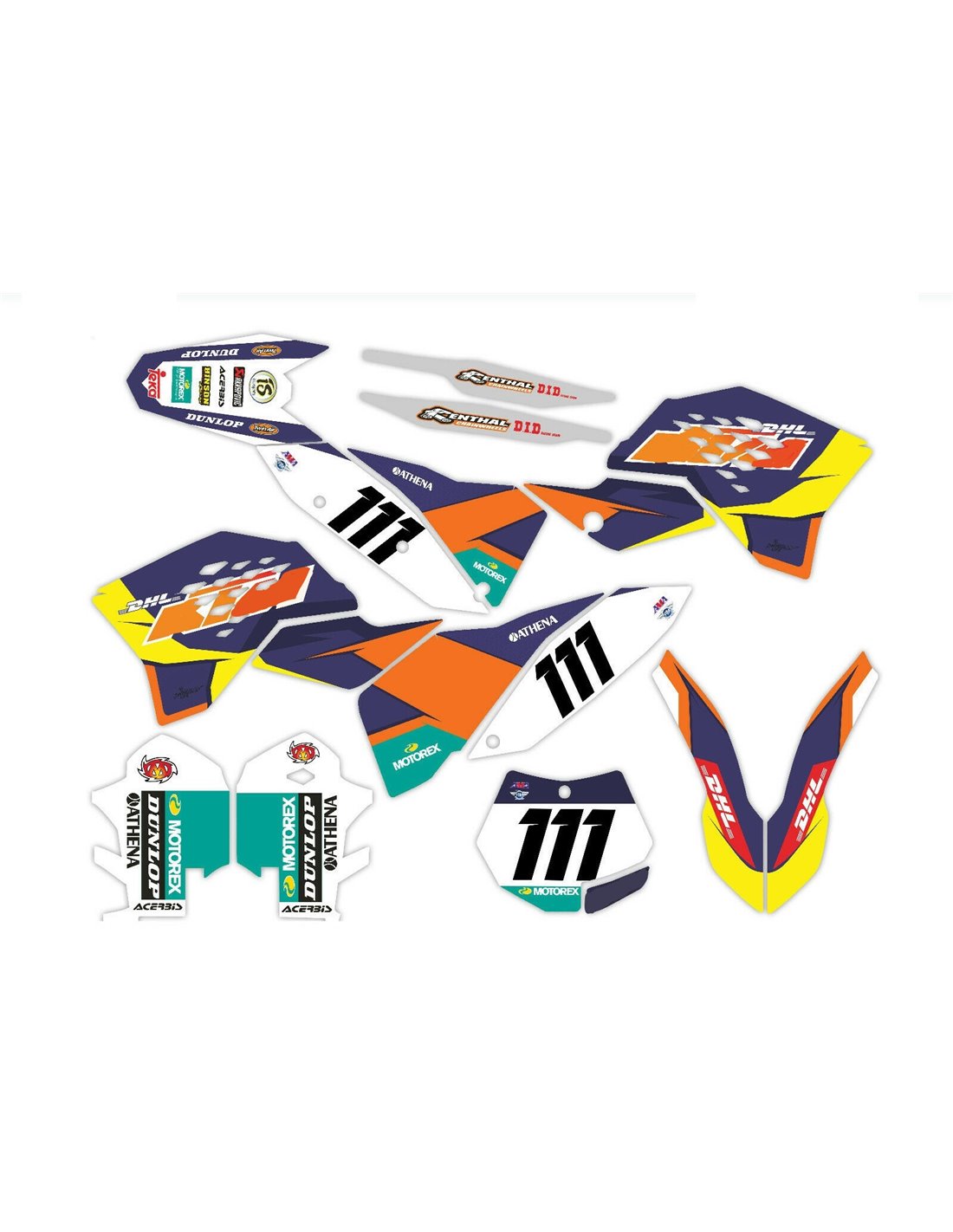 The stickers we produce are made of first quality crystal materials that will be adapted easily and perfectly on the plastics of the motorcycle of the customer. The resistance of the material allows our graphic to stay perfectly sticked also during the most difficult usage conditions of the motorcycle. The installation, thanks to the channels for air discharge lets you install the stickers smoothly and without bubbles. We use last generation machineries for the printing, so we can print bright colors and high qualities shades. We include a protective layer on the stickers, so they will be always bright during the years and are protected against water and dirt. It is possible to customize the stickers as you prefer. You can add, remove or change technician sponsors, add a custom race number or your own name. You can indicate all changes in the field “Product customization” on the website during the purchase. We are not limited only to the graphics on our website, you can send us by email or WhatsApp a picture of a design we don’t have, so we can make you a quotation and then make it. Through the purchase, you accept the sales conditions.