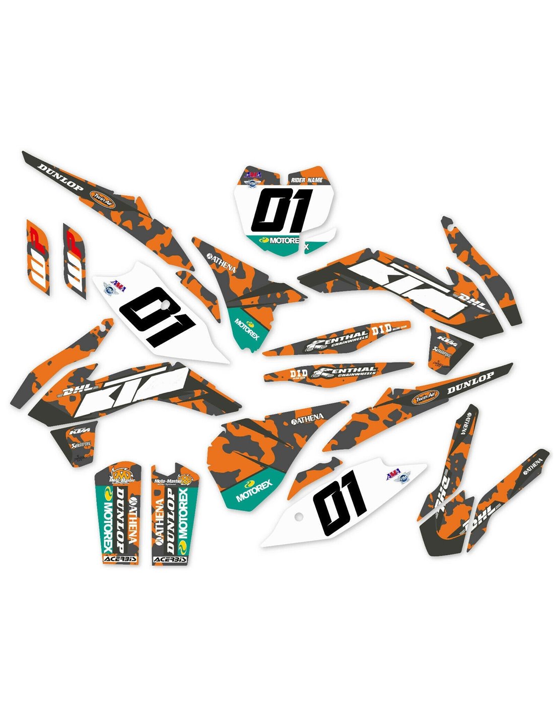 The stickers we produce are made of first quality crystal materials that will be adapted easily and perfectly on the plastics of the motorcycle of the customer. The resistance of the material allows our graphic to stay perfectly sticked also during the most difficult usage conditions of the motorcycle. The installation, thanks to the channels for air discharge lets you install the stickers smoothly and without bubbles. We use last generation machineries for the printing, so we can print bright colors and high qualities shades. We include a protective layer on the stickers, so they will be always bright during the years and are protected against water and dirt. It is possible to customize the stickers as you prefer. You can add, remove or change technician sponsors, add a custom race number or your own name. You can indicate all changes in the field “Product customization” on the website during the purchase. We are not limited only to the graphics on our website, you can send us by email or WhatsApp a picture of a design we don’t have, so we can make you a quotation and then make it. Through the purchase, you accept the sales conditions.