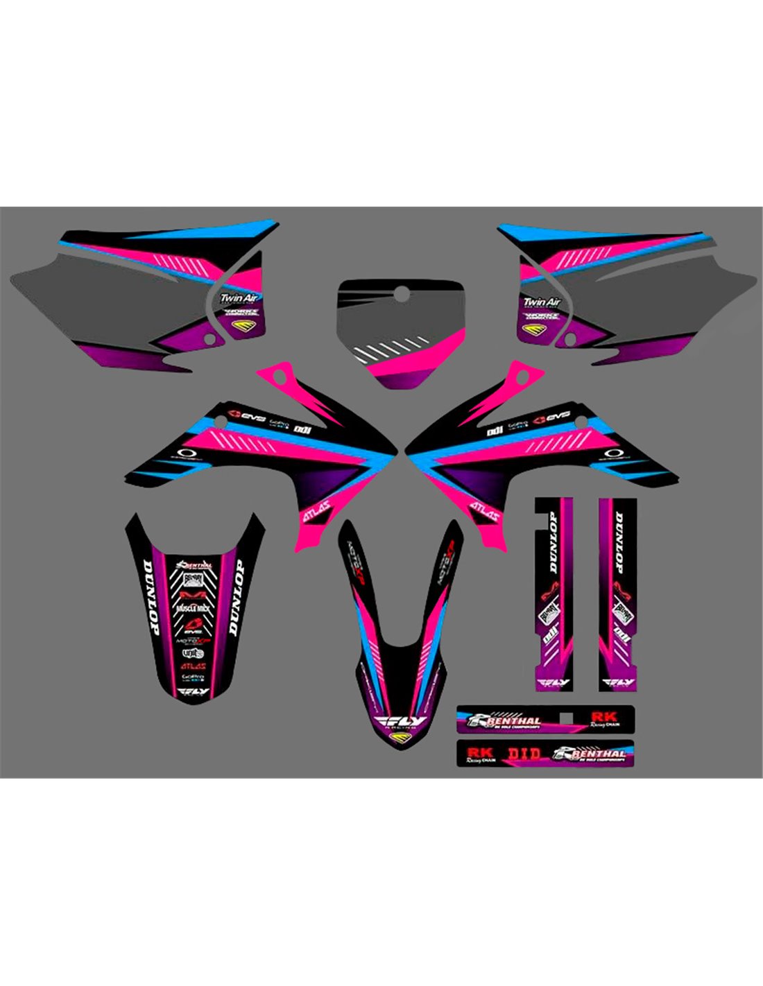 The stickers we produce are made of first quality crystal materials that will be adapted easily and perfectly on the plastics of the motorcycle of the customer. The resistance of the material allows our graphic to stay perfectly sticked also during the most difficult usage conditions of the motorcycle. The installation, thanks to the channels for air discharge lets you install the stickers smoothly and without bubbles. We use last generation machineries for the printing, so we can print bright colors and high qualities shades. We include a protective layer on the stickers, so they will be always bright during the years and are protected against water and dirt. It is possible to customize the stickers as you prefer. You can add, remove or change technician sponsors, add a custom race number or your own name. You can indicate all changes in the field “Product customization” on the website during the purchase. We are not limited only to the graphics on our website, you can send us by email or WhatsApp a picture of a design we don’t have, so we can make you a quotation and then make it. Through the purchase, you accept the sales conditions.