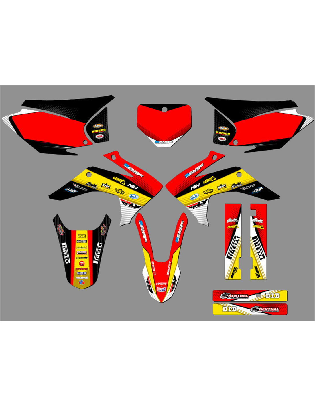The stickers we produce are made of first quality crystal materials that will be adapted easily and perfectly on the plastics of the motorcycle of the customer. The resistance of the material allows our graphic to stay perfectly sticked also during the most difficult usage conditions of the motorcycle. The installation, thanks to the channels for air discharge lets you install the stickers smoothly and without bubbles. We use last generation machineries for the printing, so we can print bright colors and high qualities shades. We include a protective layer on the stickers, so they will be always bright during the years and are protected against water and dirt. It is possible to customize the stickers as you prefer. You can add, remove or change technician sponsors, add a custom race number or your own name. You can indicate all changes in the field “Product customization” on the website during the purchase. We are not limited only to the graphics on our website, you can send us by email or WhatsApp a picture of a design we don’t have, so we can make you a quotation and then make it. Through the purchase, you accept the sales conditions.