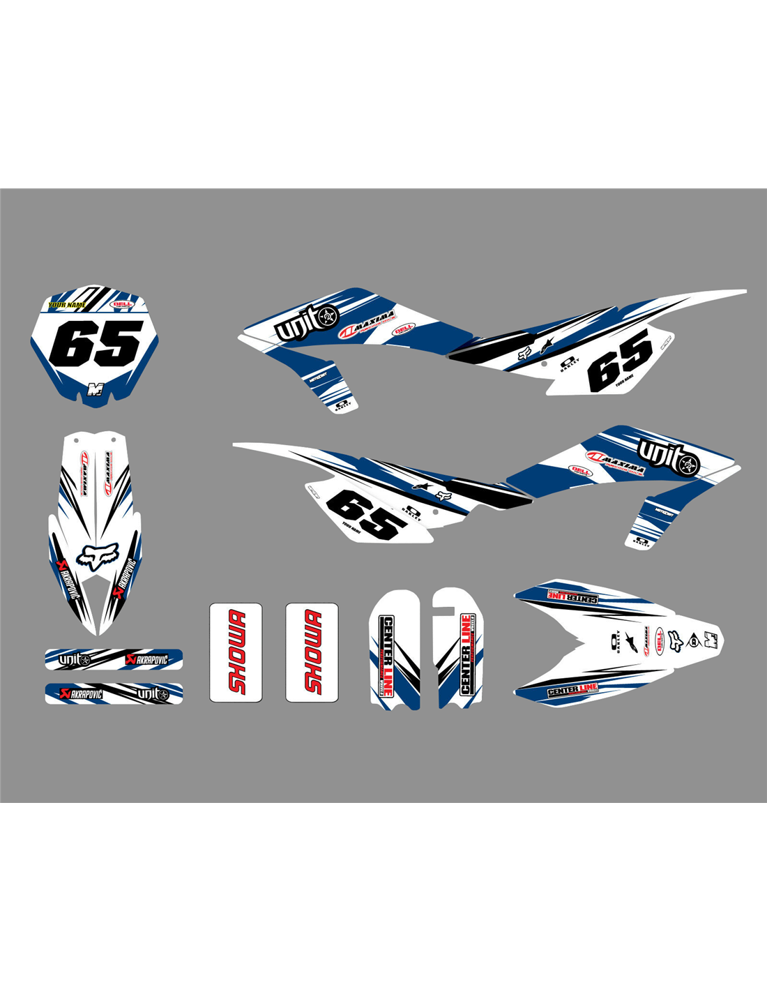 The stickers we produce are made of first quality crystal materials that will be adapted easily and perfectly on the plastics of the motorcycle of the customer. The resistance of the material allows our graphic to stay perfectly sticked also during the most difficult usage conditions of the motorcycle. The installation, thanks to the channels for air discharge lets you install the stickers smoothly and without bubbles. We use last generation machineries for the printing, so we can print bright colors and high qualities shades. We include a protective layer on the stickers, so they will be always bright during the years and are protected against water and dirt. It is possible to customize the stickers as you prefer. You can add, remove or change technician sponsors, add a custom race number or your own name. You can indicate all changes in the field “Product customization” on the website during the purchase. We are not limited only to the graphics on our website, you can send us by email or WhatsApp a picture of a design we don’t have, so we can make you a quotation and then make it. Through the purchase, you accept the sales conditions.